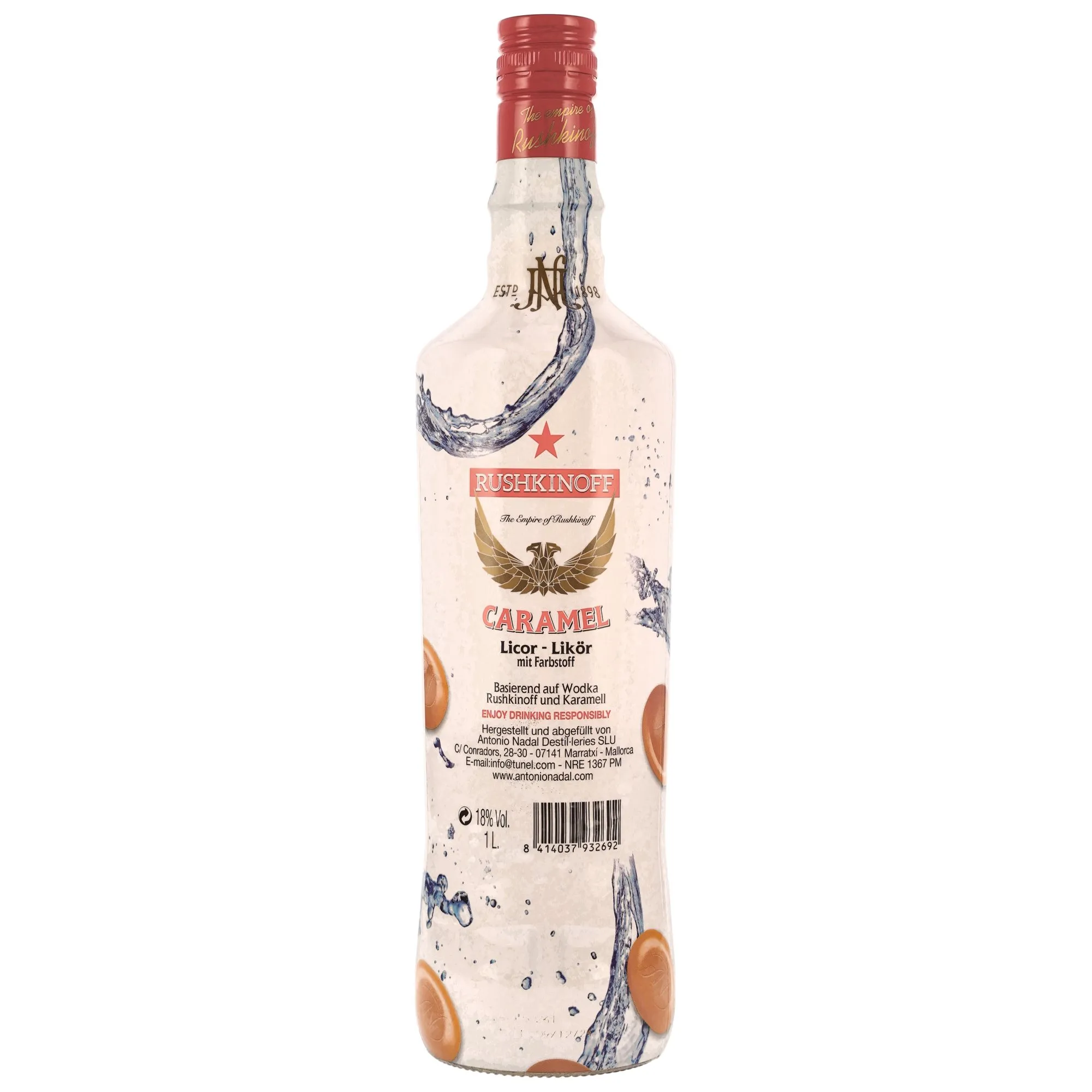 The Rushkinoff Caramel Liter is a liqueur made with great care and craftsmanship in Spain. Nestled among the gentle hills of Mallorca, it is the result of years of experience and tradition in spirit production. With each sip, you can feel the passion that has gone into creating this exceptional liqueur.