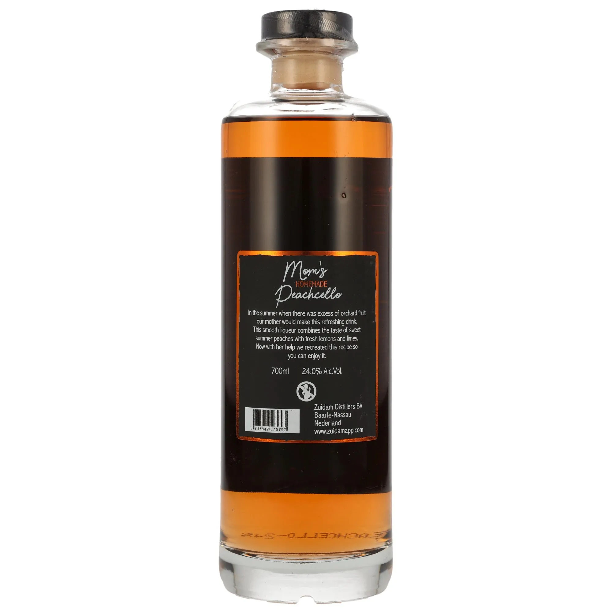 The Zuidam Mom's Homemade Peachcello is a flavorful and premium liqueur that originates from the heart of the Netherlands. Produced by the esteemed Zuidam Distillers, a family-owned business renowned for their meticulous craftsmanship, this peach liqueur embodies the rich traditions of the region.