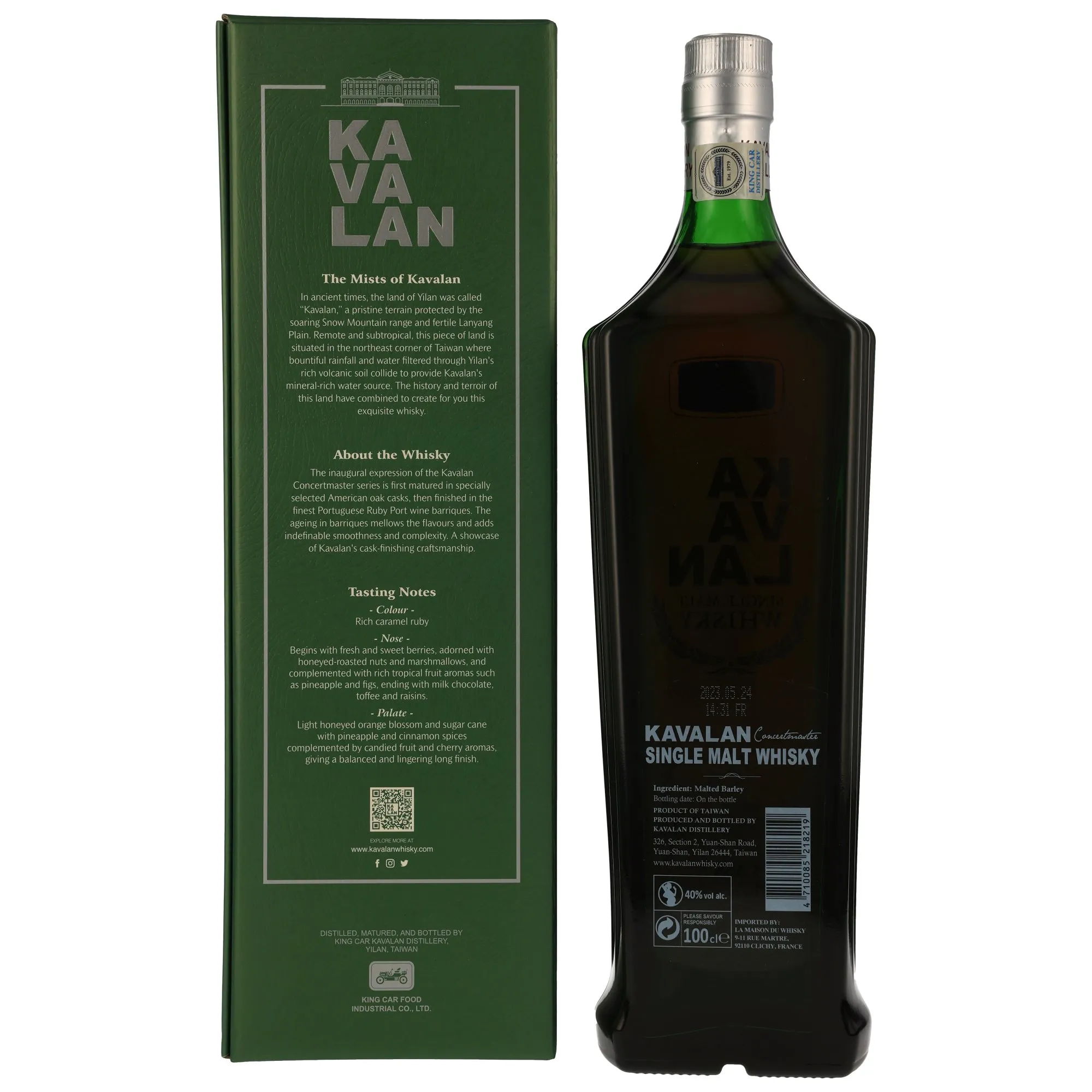 The Kavalan Concertmaster Port Cask Finish is a remarkable whisky from Taiwan's Kavalan distillery, renowned for its outstanding spirits worldwide. The unique aging process in barrels that previously contained port wine gives this aqua vitae an unparalleled fruity and sweet character, delighting both connoisseurs and newcomers.