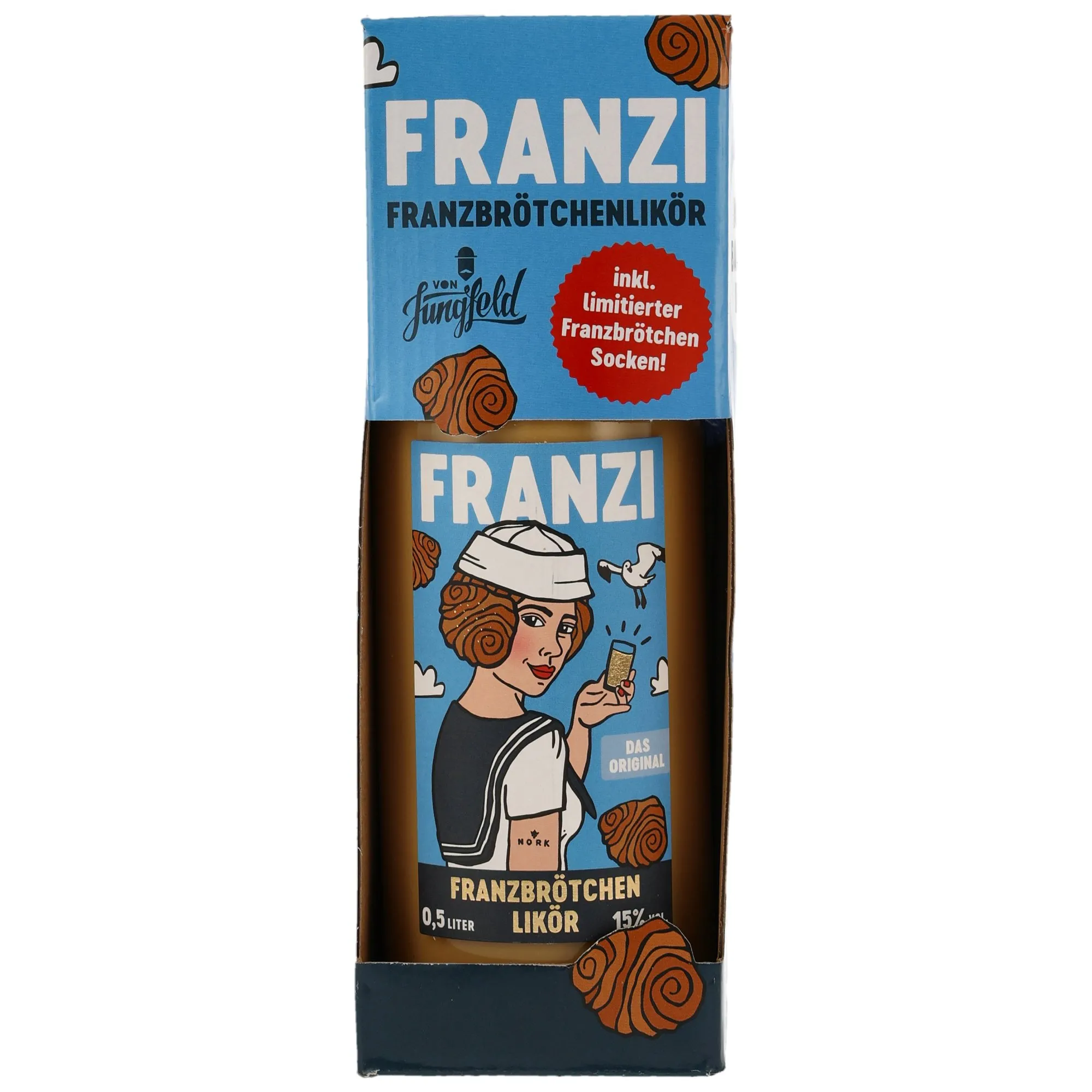 The Franzi Franzbrötchenlikör - Socks Edition is not just a liqueur; it’s a piece of Bremen's culture in liquid form. It is crafted by the renowned NORK GmbH, known for its innovative and high-quality products. The Socks Edition pays homage to northern German traditions, bringing the familiar aromas of a freshly baked Franzbrötchen directly to your glass.