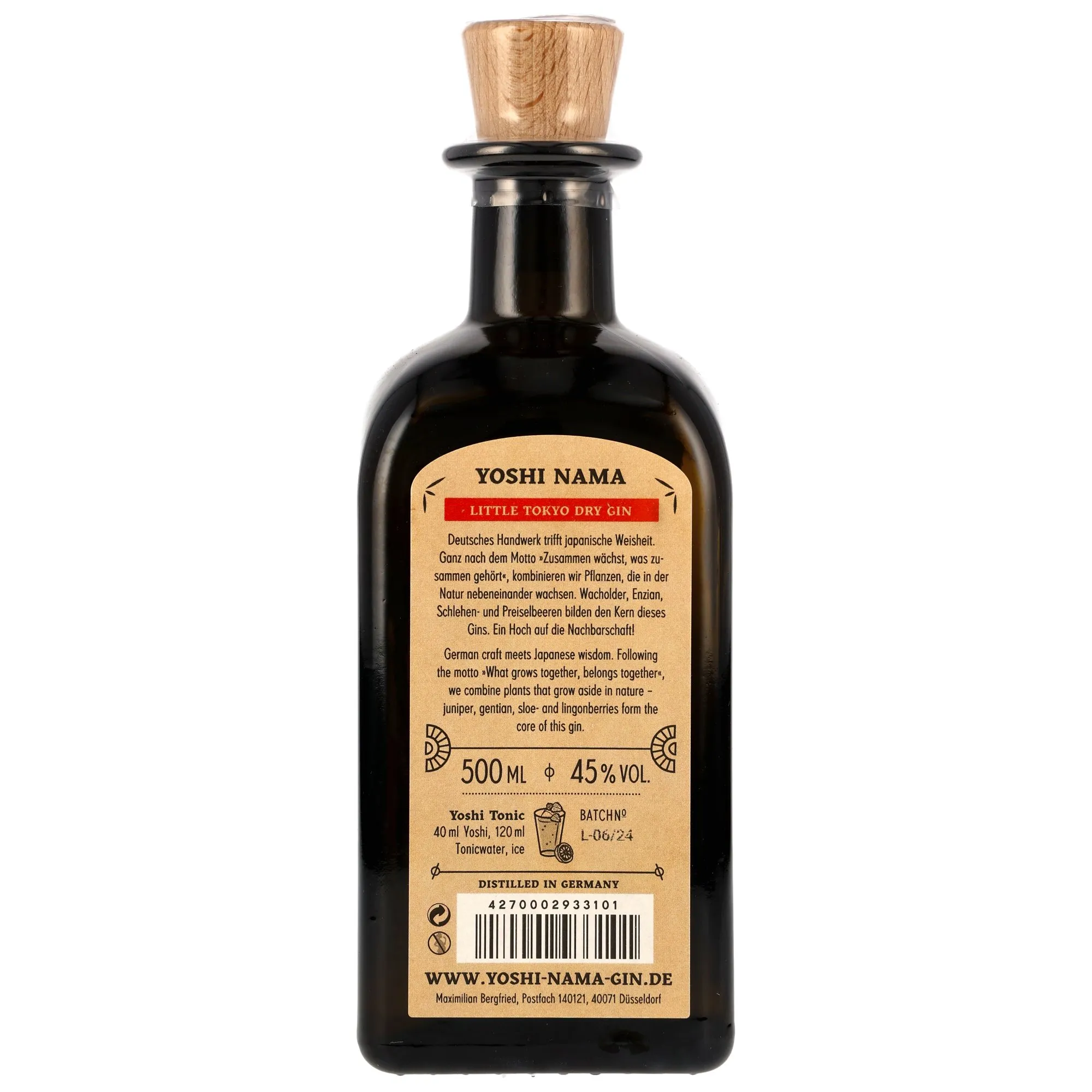 Yoshi Nama Little Tokyo Dry Gin is based in Germany but draws inspiration from the timeless flavors of Japan. The combination of carefully selected botanicals and traditional methods makes this gin a true masterpiece. Every element of the production process is executed with the utmost care to ensure a product of unmatched quality.