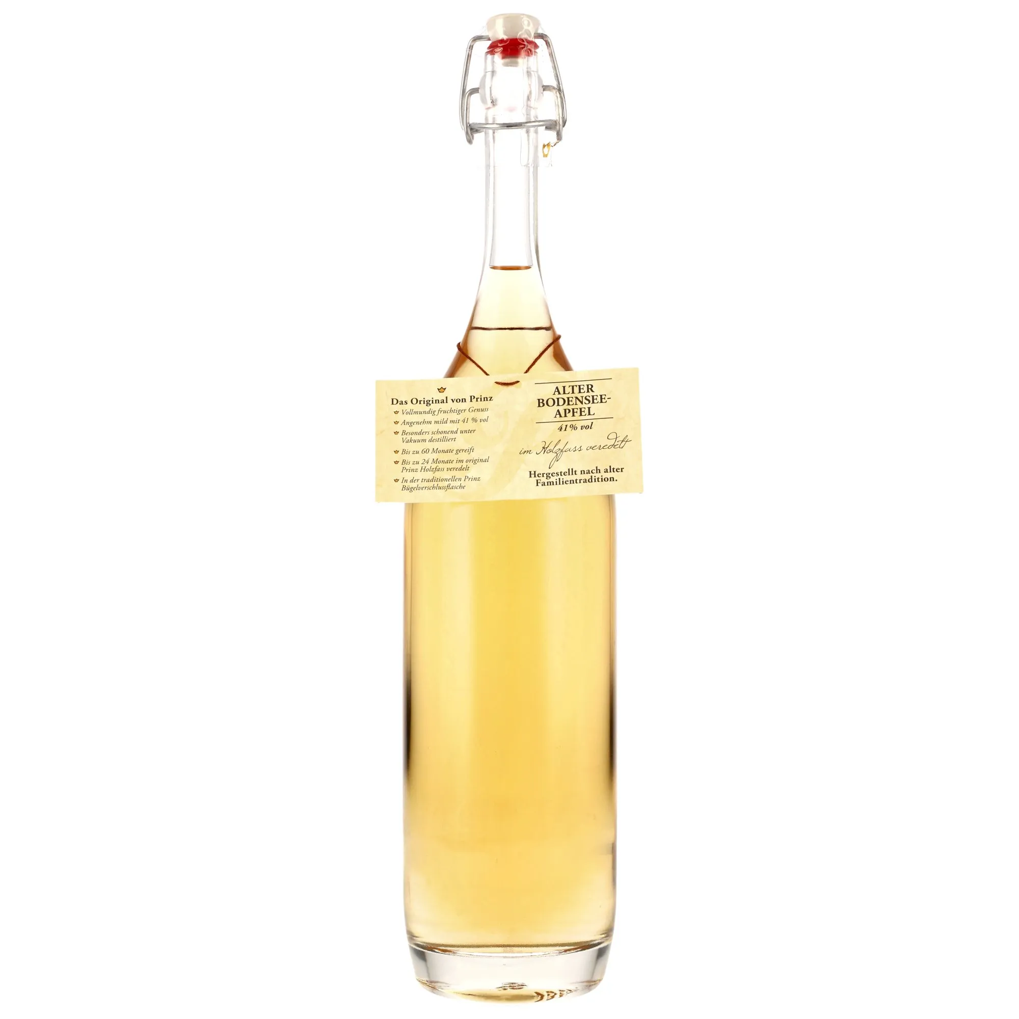 The Prinz Alter Bodensee-Apple is an outstanding product of Austrian distilling art. Made from handpicked apples from the Lake Constance region, this fruit brandy embodies the rich fertility of the area and the expertise of master distillers. The Prinz Fein-Brennerei not only focuses on the highest quality but also on a traditionally gentle production method that makes each bottle a unique piece.