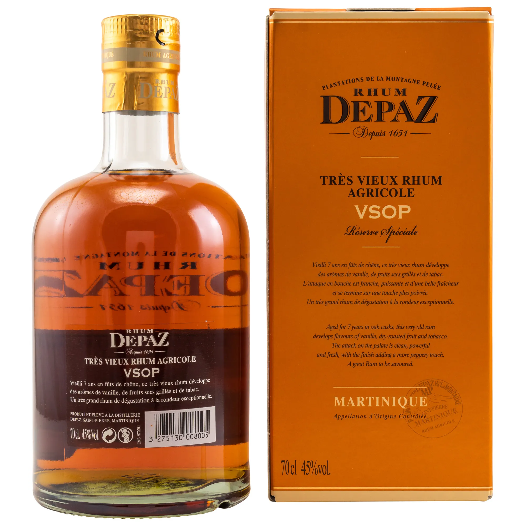 - Traditional Production: The Depaz VSOP ages in fine oak barrels, imparting its distinctive character.