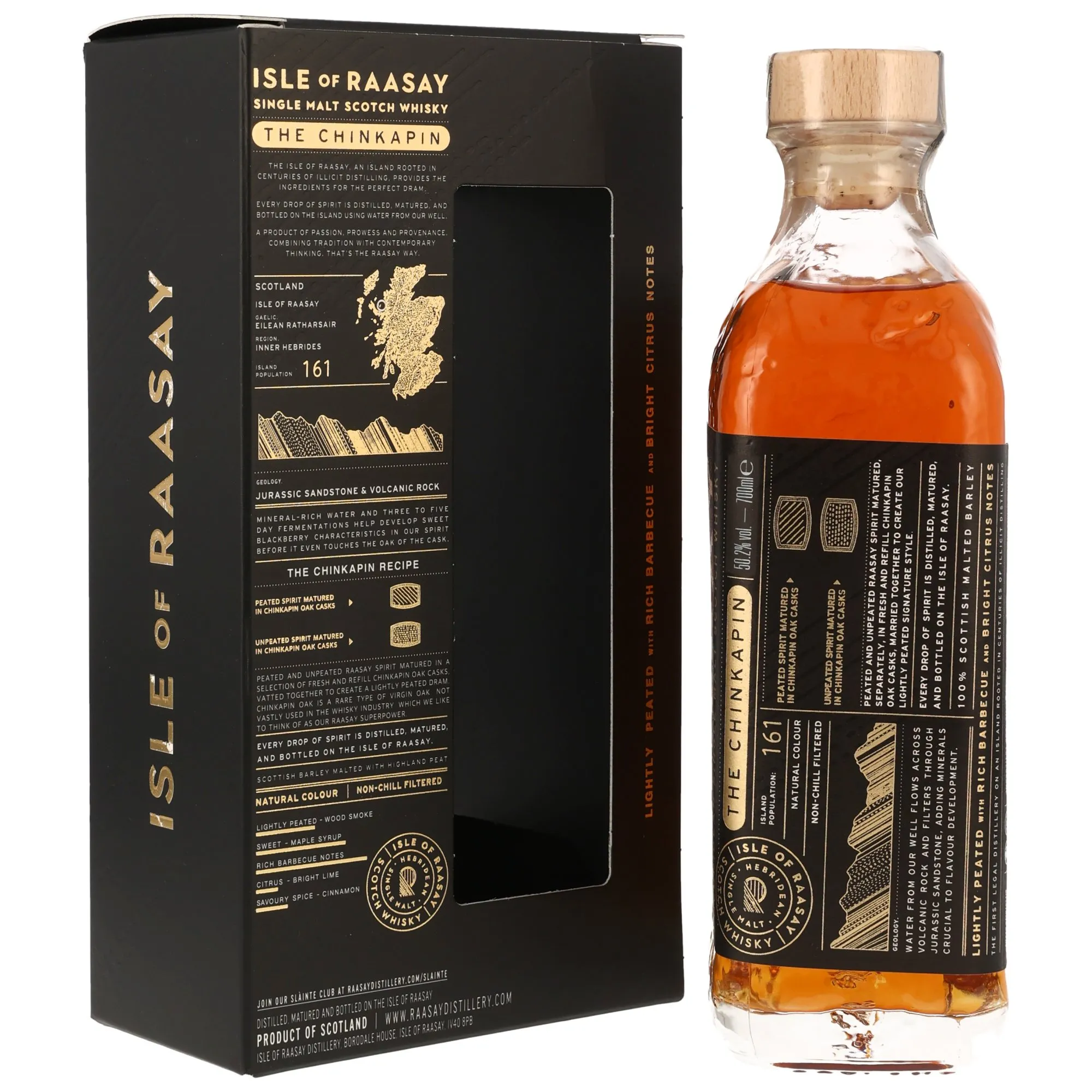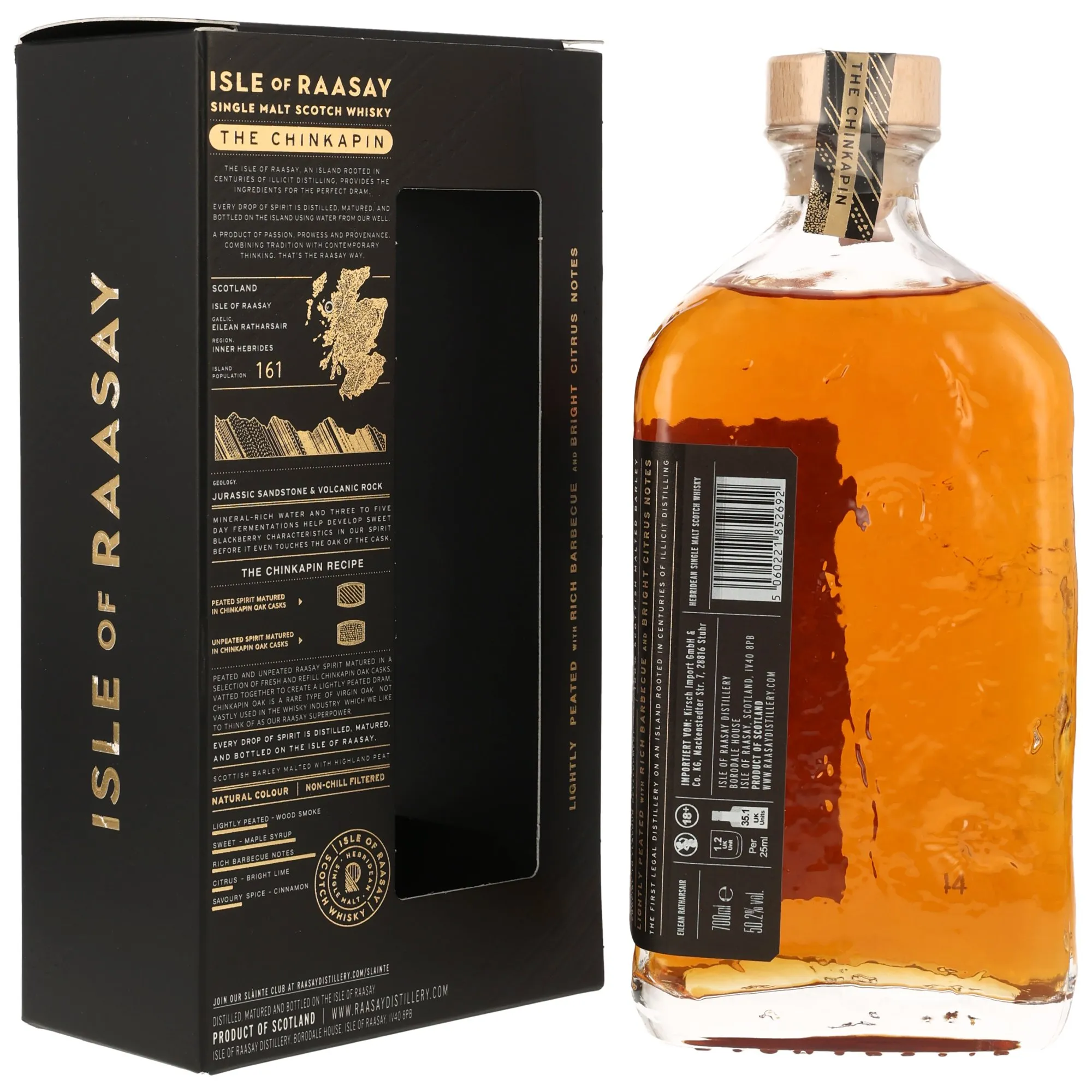 The Isle of Raasay Single Malt Whisky - The Chinkapin is an extraordinary product from the renowned Isle of Raasay Distillery. This distillery has committed itself to creating innovative whisky variants, and with The Chinkapin, they are setting new standards. The whisky is aged in specially crafted Chinkapin casks, an oak species from North America, which distinctly separates it from conventional Scottish releases.